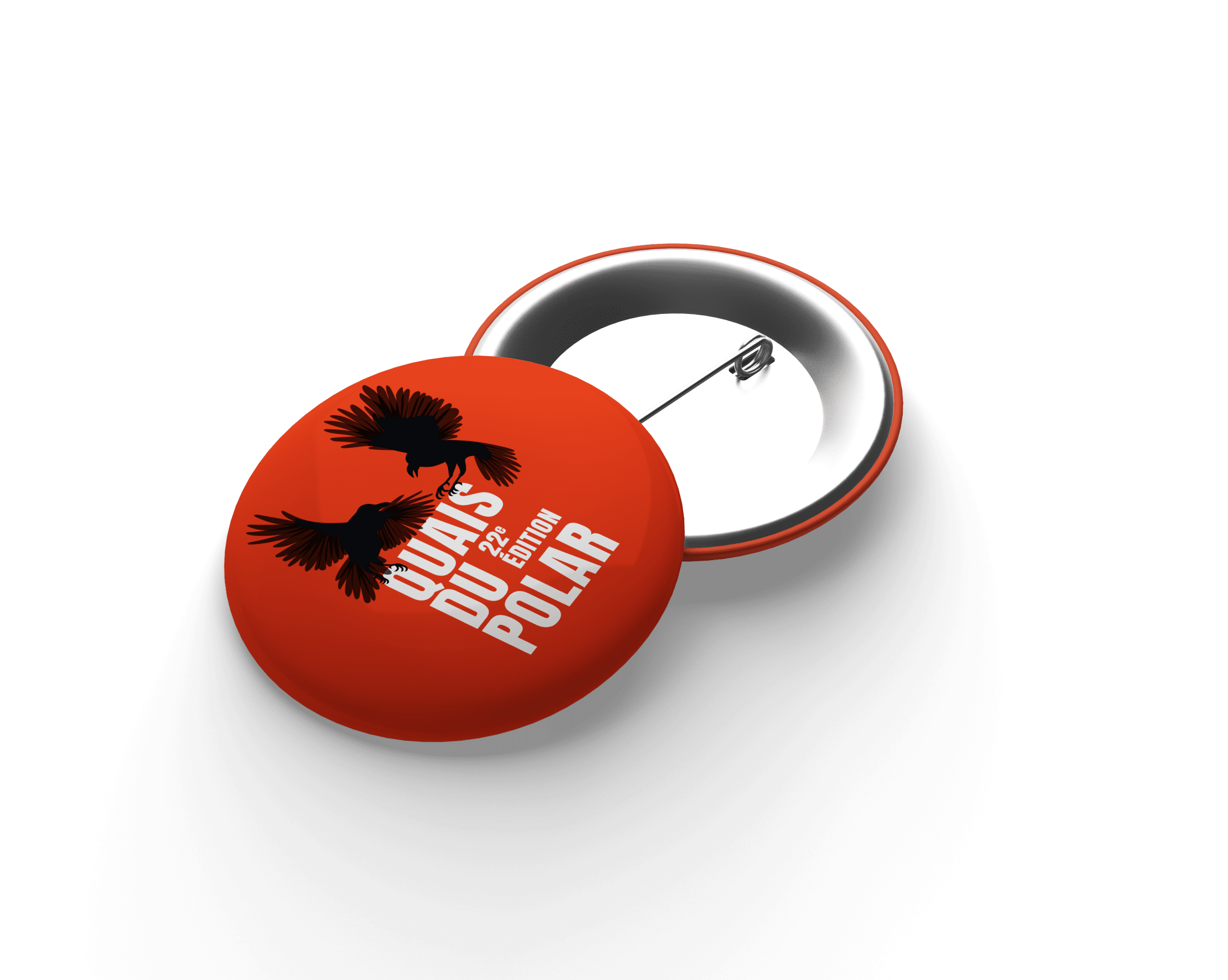 Badge à épingle Visuel n°4 de la 22e édition de Quais du Polar (envol de corbeaux) Dimensions : 38mm